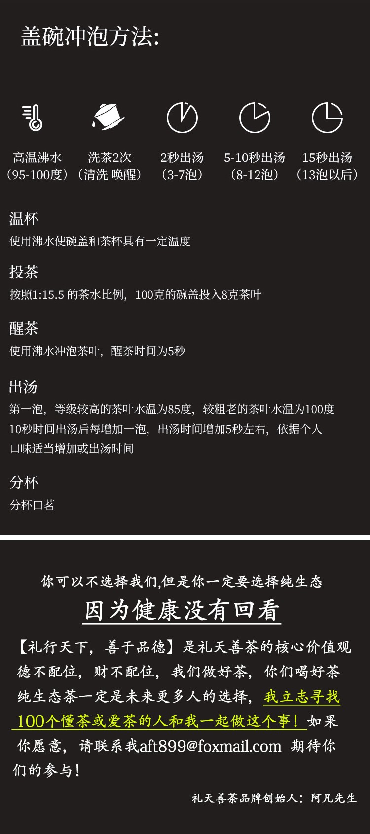 产品说明: 茶品:2008年明前银毫有机普洱生茶白莺山古树纯料 原料:白莺山古茶树纯料2008年明前头春 树龄:约300年 仓储:云南干仓(自然仓) 地点:云南省临沧市云县 包装:嘉茗原包装(含内票) 包装生产信息状况:齐全 说明:2008年当年通过有机认证,因该厂已破产拍卖,未保持续费,有机认证号已失效;因时间久远,二维码涂层颜料已融入纸张中,故无法刮开,请各收藏者悉知。 茶品品牌:嘉茗(云县嘉木茶业制品厂) 担保出品方:礼天善茶 礼天善茶品牌深圳分公司:深圳市宝安区马安山社区百荣达商务中心206 官方公众号:ltsc178 官方网站:www.lts-tea.com |